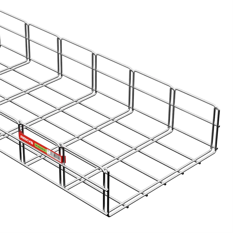 Rozměry: Výrobní délka - 2000 mm Šířka žlabu – 300 mm Výška bočnice - 100 mm Rozměry ok – 50x100 mm Dvojitý příčník – drát O 4,0 mm Podélník – drát O 4,0 mm Vrchní lem – drát O 4,0 mm Drátěné kabelové žlaby MERKUR 2 jsou určeny pro montáž kabelové trasy silnoproudých světelných a motorických rozvodů, slaboproudů, měření a regulace a rozvodu jiných médií.