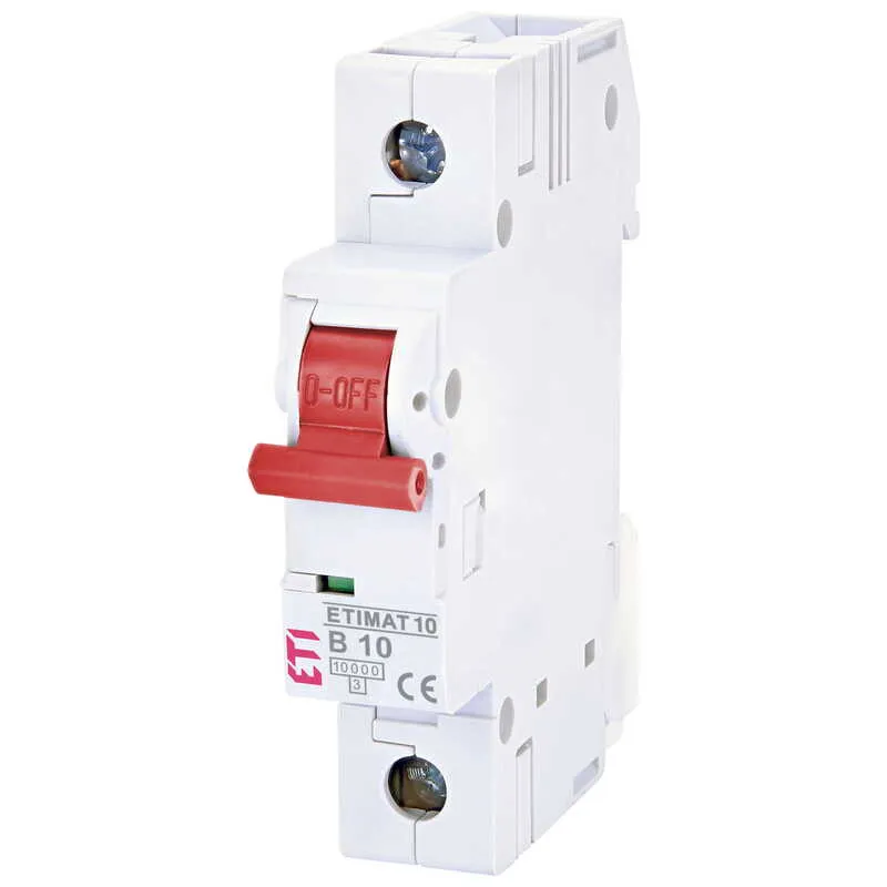 Jednopólový jistič ETIMAT Colour má vypínací schopnost 10kA a průřez připojovacího vodiče činí 1-25 mm2. Napětí je dimenzované 230V. Má vypínací charakteristiku B. Stupeň krytí činí IP20.