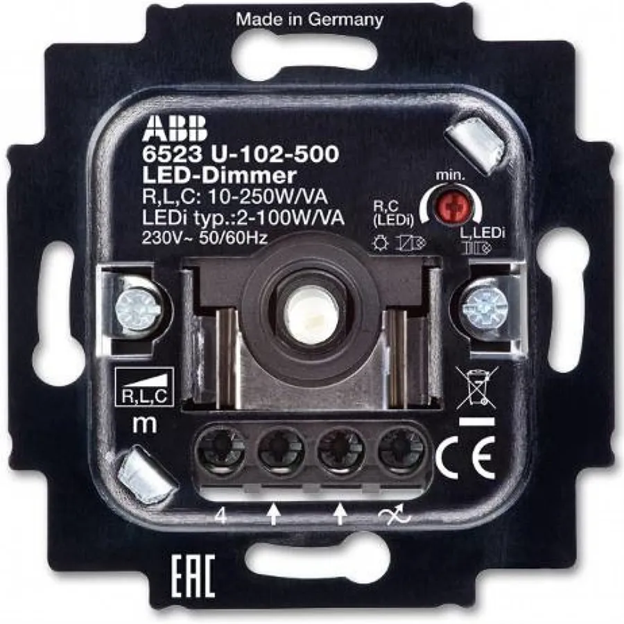 Stmívač určený pro LED zdroje, klasické i halogenové zdroje. Provedení s otočným ovládáním úrovně jasu. Disponuje technologií MOS-FET, díky které má nehlučný provoz. Stmívač má elektronickou pojistku proti zkratu a přetížení. Je určen pro vakuové, halogenové a stmívatelné žárovky LED, které je možné kombinovat.