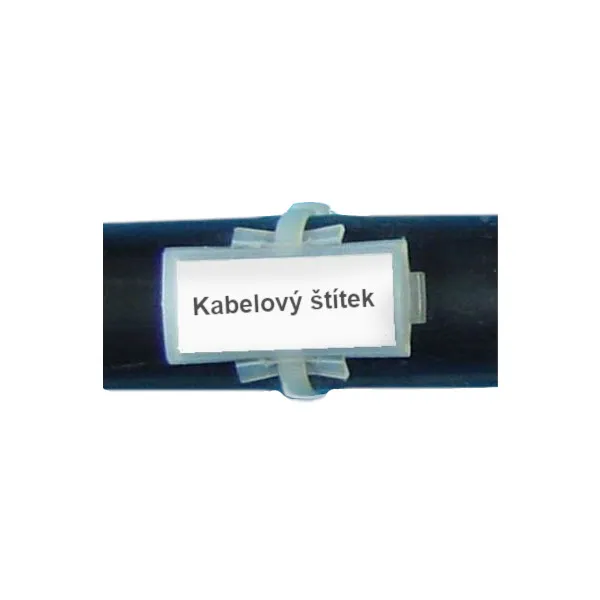 TÍTEK KABELOVÝ 60x25mm Štítek pro umístění popisku Na kabel se připevňuje vázacím páskem (není součástí dodávky) Vnitřní rozměry 60x24mm Vnější rozměry zavřeného štítku: 65x40mm