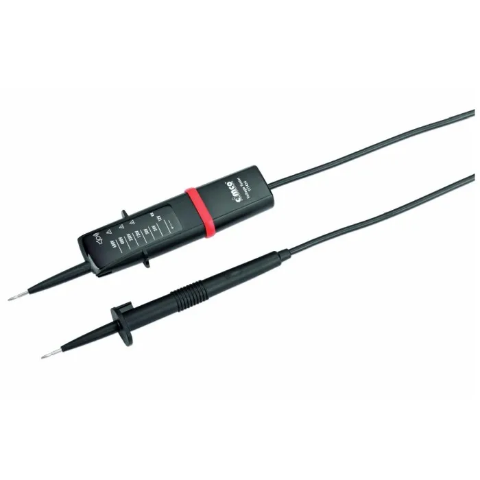 Zkoušečka napětí AC / DC až 690 V, test spojitosti s optickým a akustickým displejem, integrovaný unipolární test, automatická detekce polarity, jasný LED displej, moderní pouzdro odolné proti nárazu, rychlý test jednou rukou na uzemněných zásuvkách, ochrana testovacího hrotu. Displej: 11 LED (+12 V, -12 V, 24 V, 50 V, 120 V, 230 V, 400 V, 690 V), test polarity, test spojitosti, ELV, rozsah napětí 12 - 690 V AC / DC, automatické zobrazení polarity, frekvenční rozsah: AC 0 - 65 Hz, odběr proudu <3,5 mA, jednopólový test>